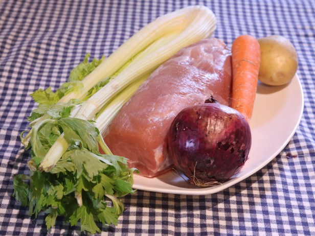 Fold the purée carefully into the mayonnaise adding the broth from cooking the meat.