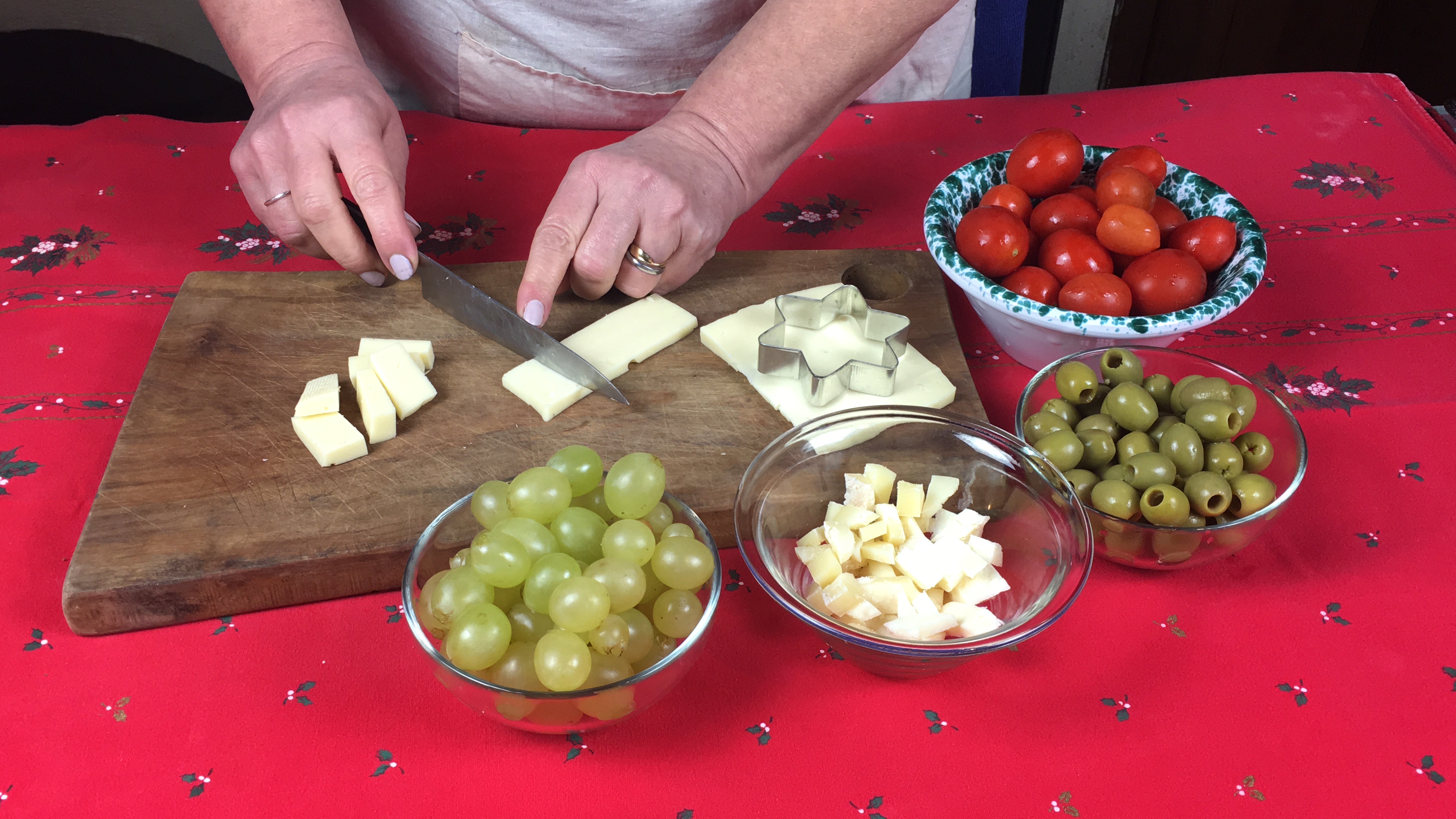 Star-cut a piece of cheese and place it at the top with an olive in the middle.