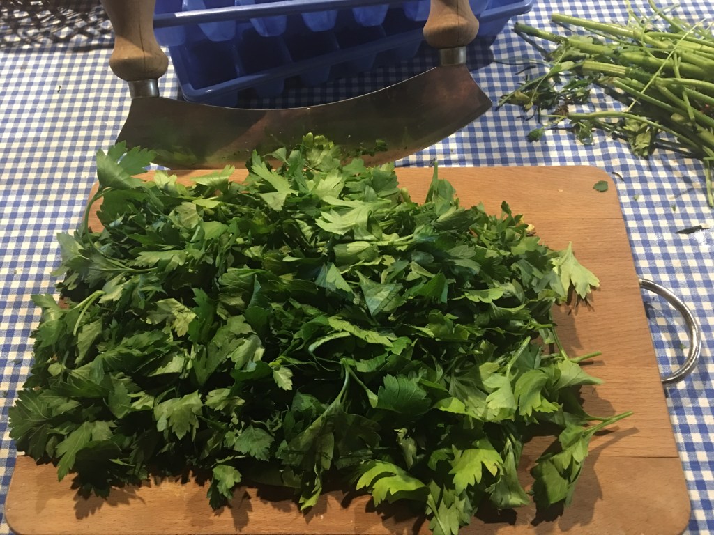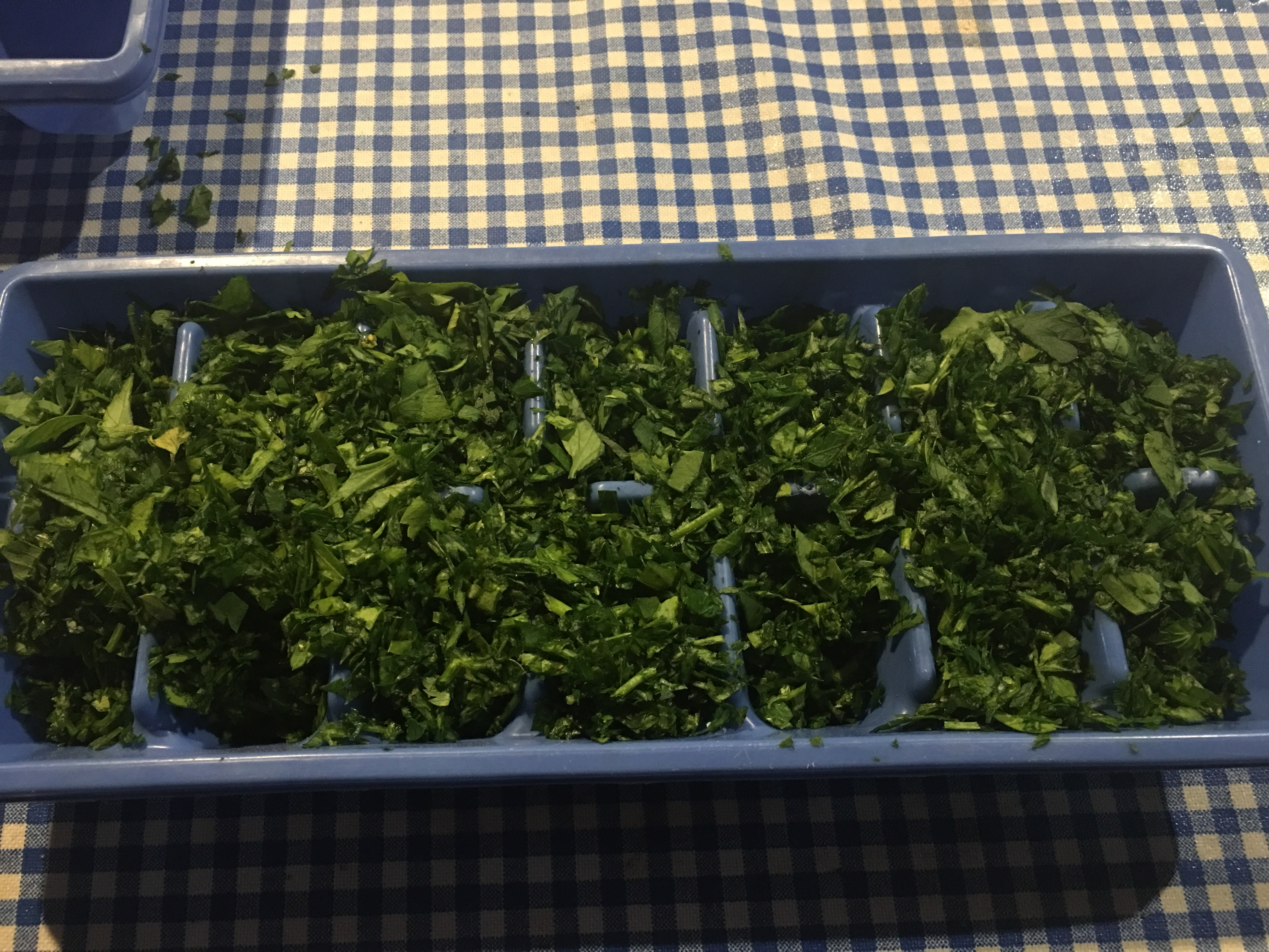 or chop it small(by mezzaluna) and freeze it in the ice containers.