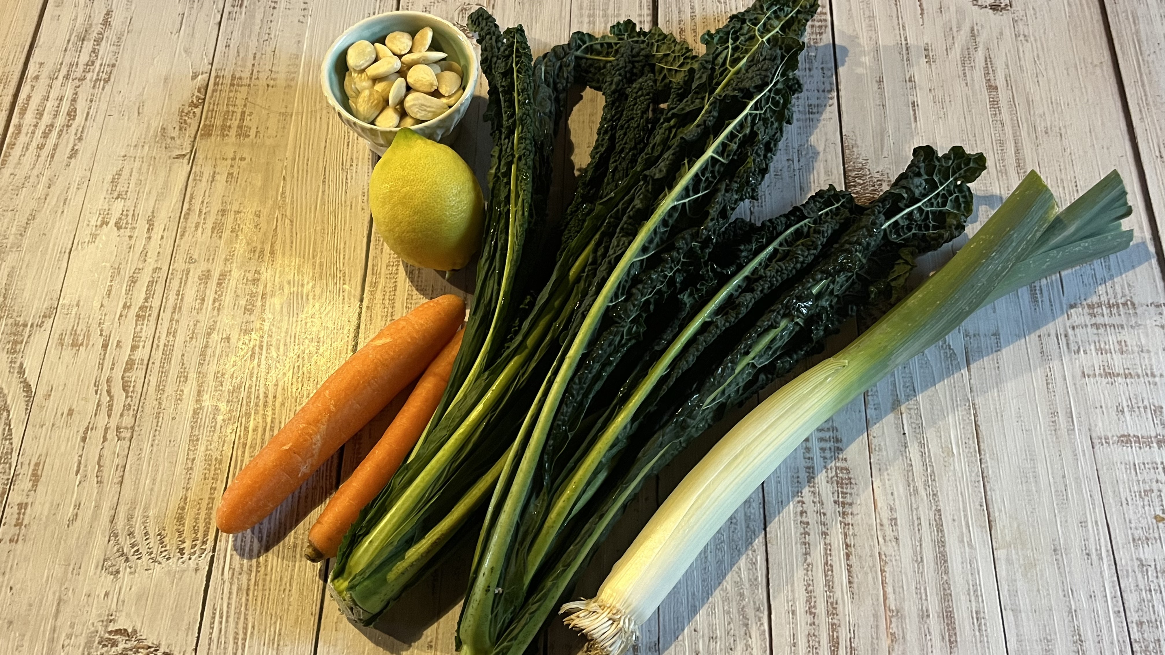 Clean the black cabbage by removing the central hard rib, pass it in the blender with the juice of half a lemon.