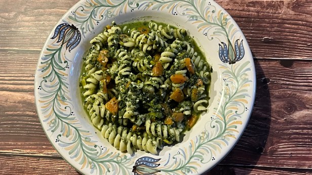 Turn or sauté the pasta for a few moments then turn off the heat, mix and serve at the table.