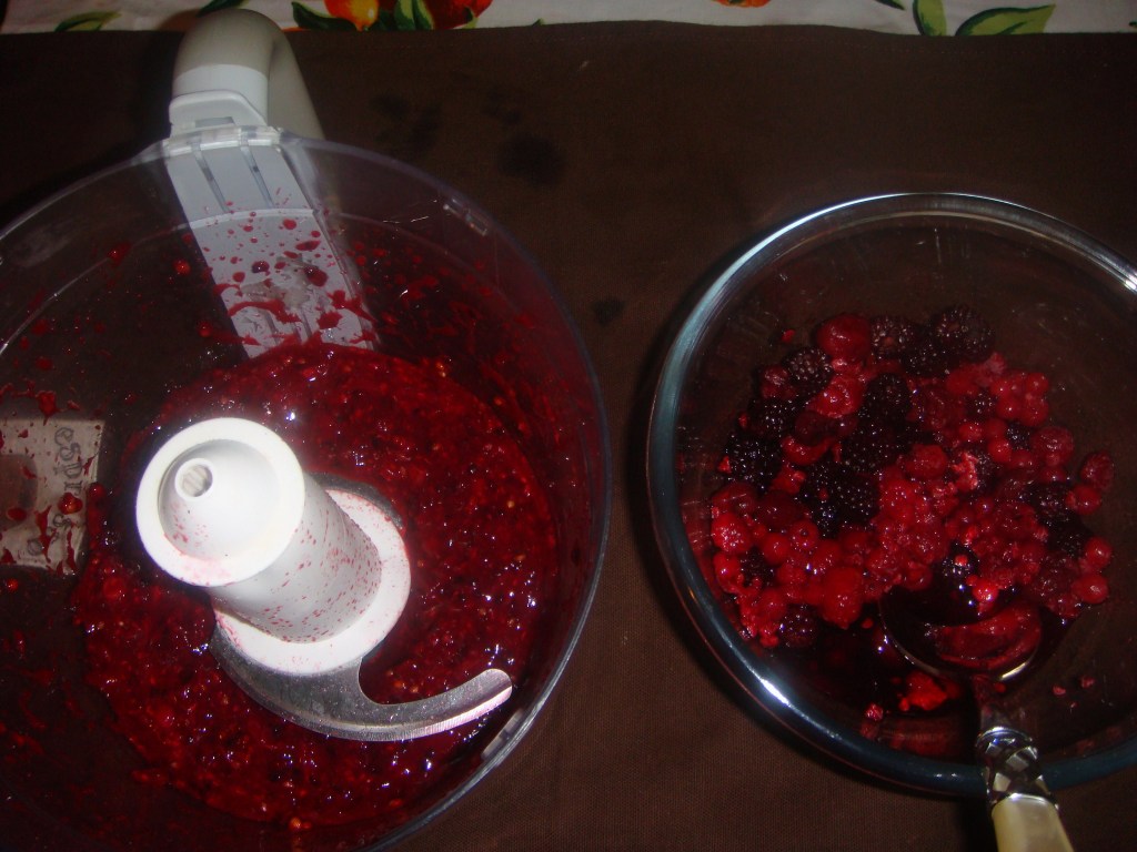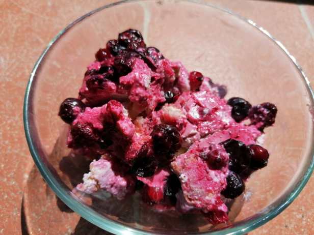 - Add half of the berries. If you like you can blend them first.