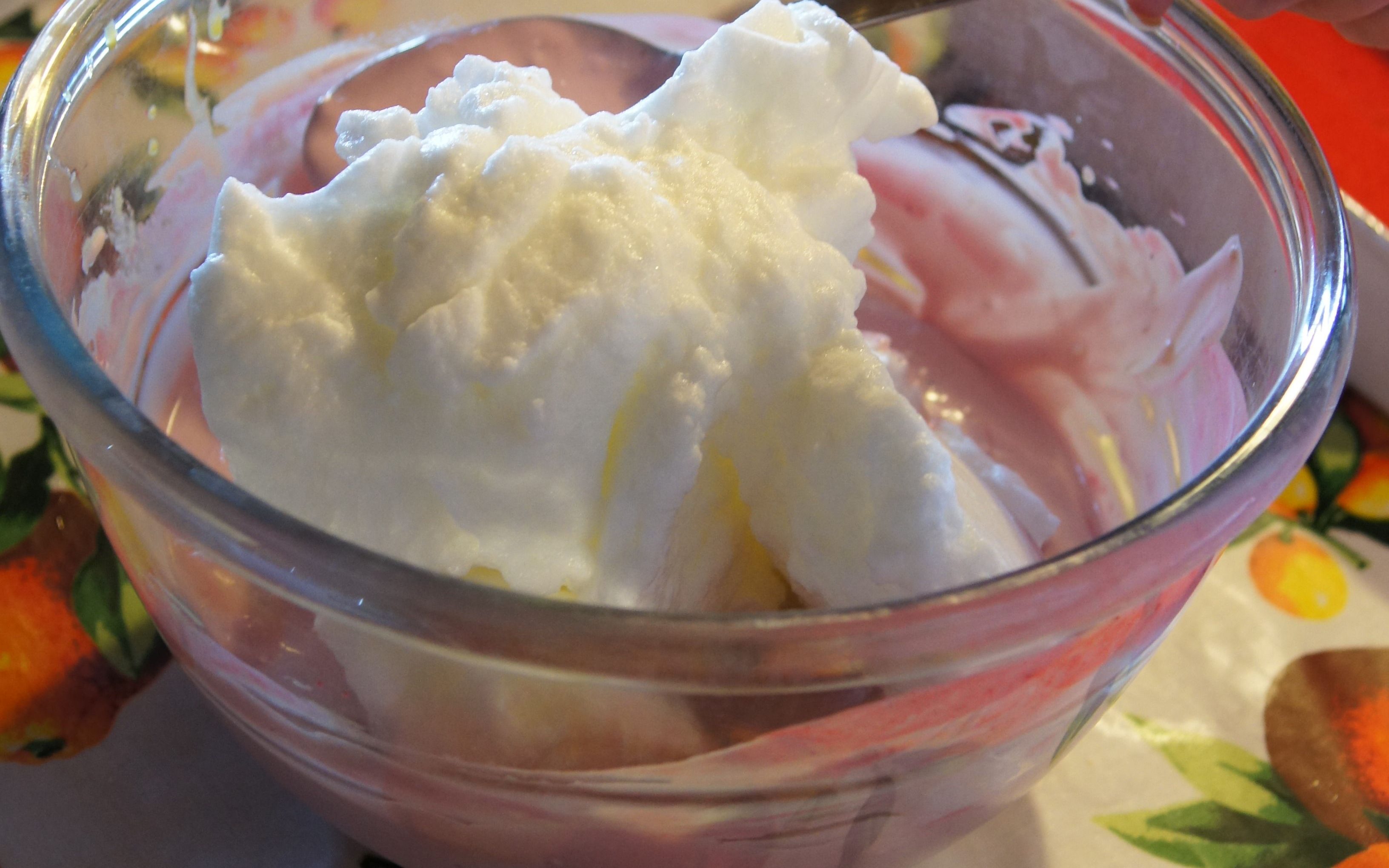 - Whisk the egg whites stiffly and add them to the cream, folding them in.