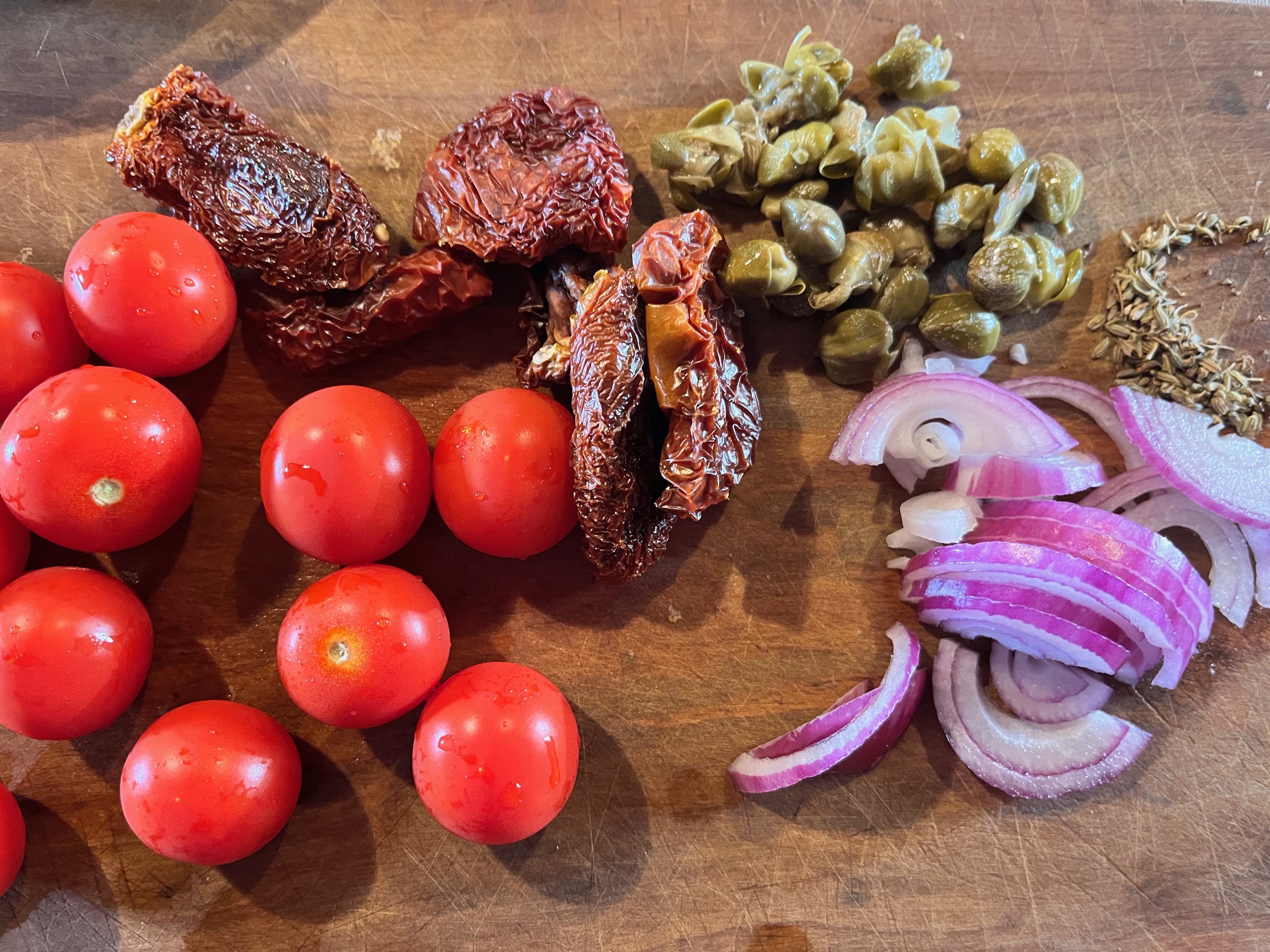 Wash the tomatoes and cut them into small pieces. Togliete dal fuoco e cuocete la pasta nell’acqua. Add the anchovies and mix for 2 minutes.