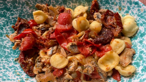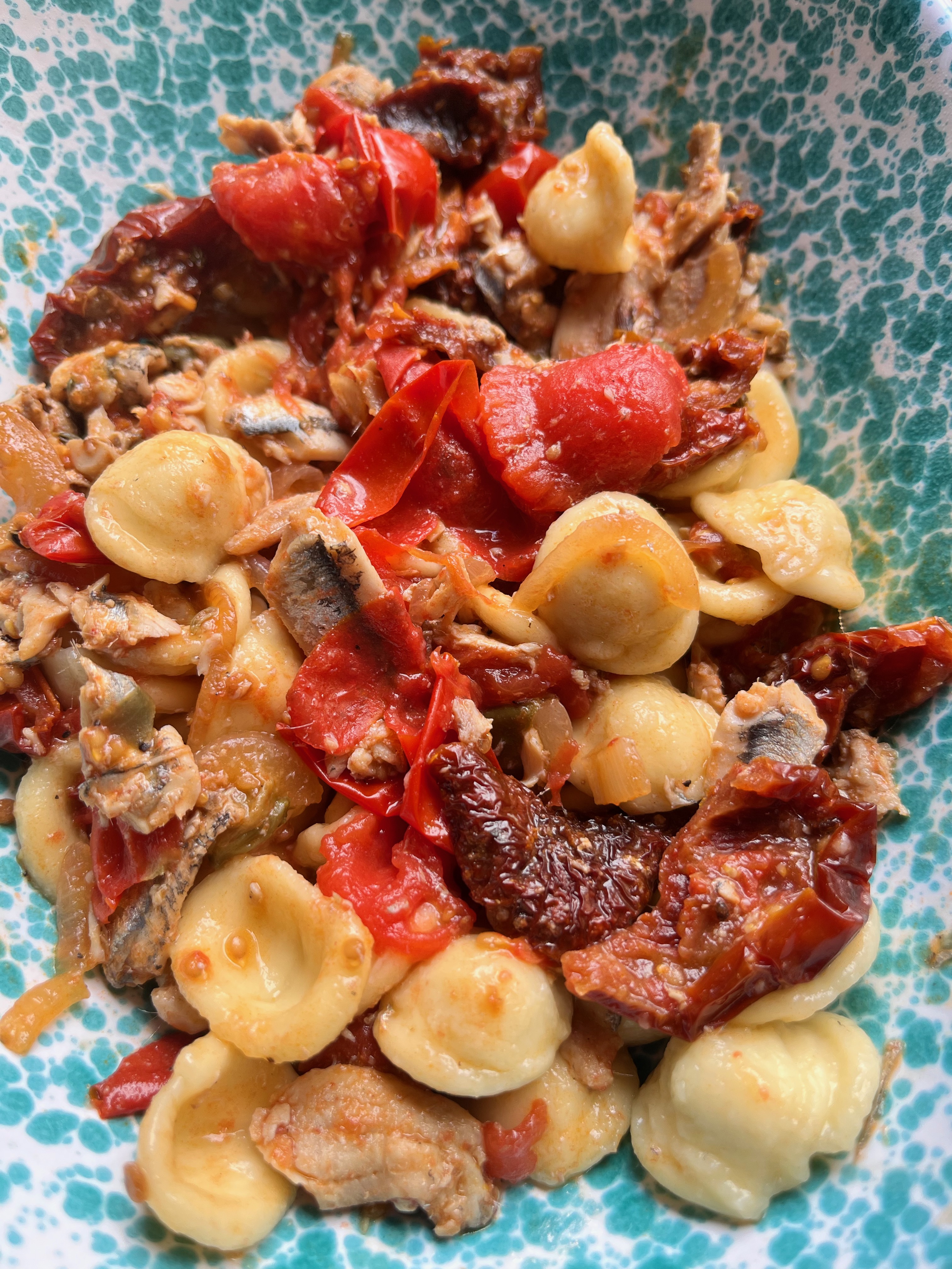Pasta with fresh anchovies is a simple and tasty dish based on fish to be prepared in a very short time; a recipe to be made in White or with Cherry Tomatoes, only with Anchovies or by adding other Ingredients. For example, in today’s recipe I decided to add dried tomatoes and capers… and also a drizzle of wild fennel:so good!