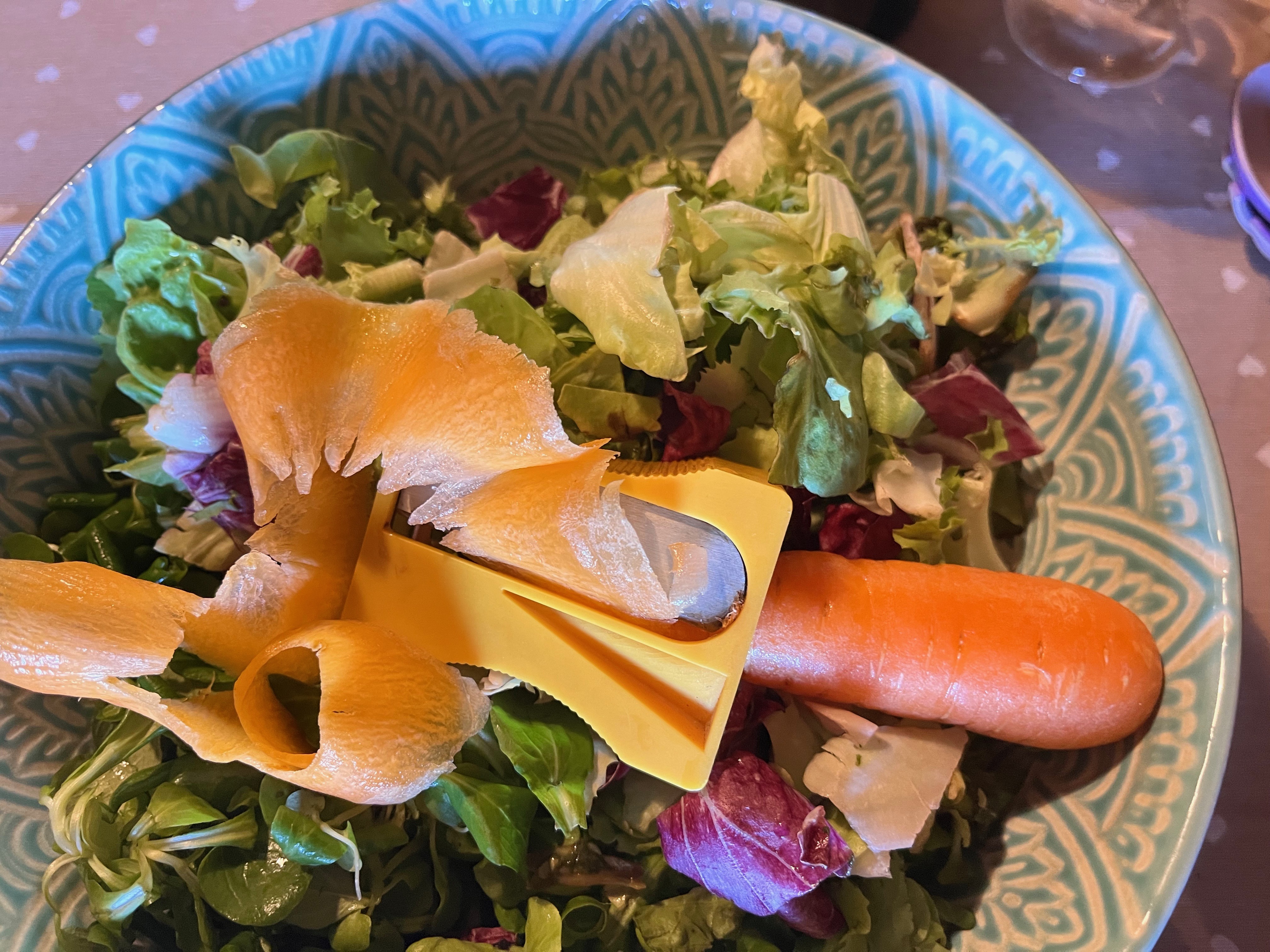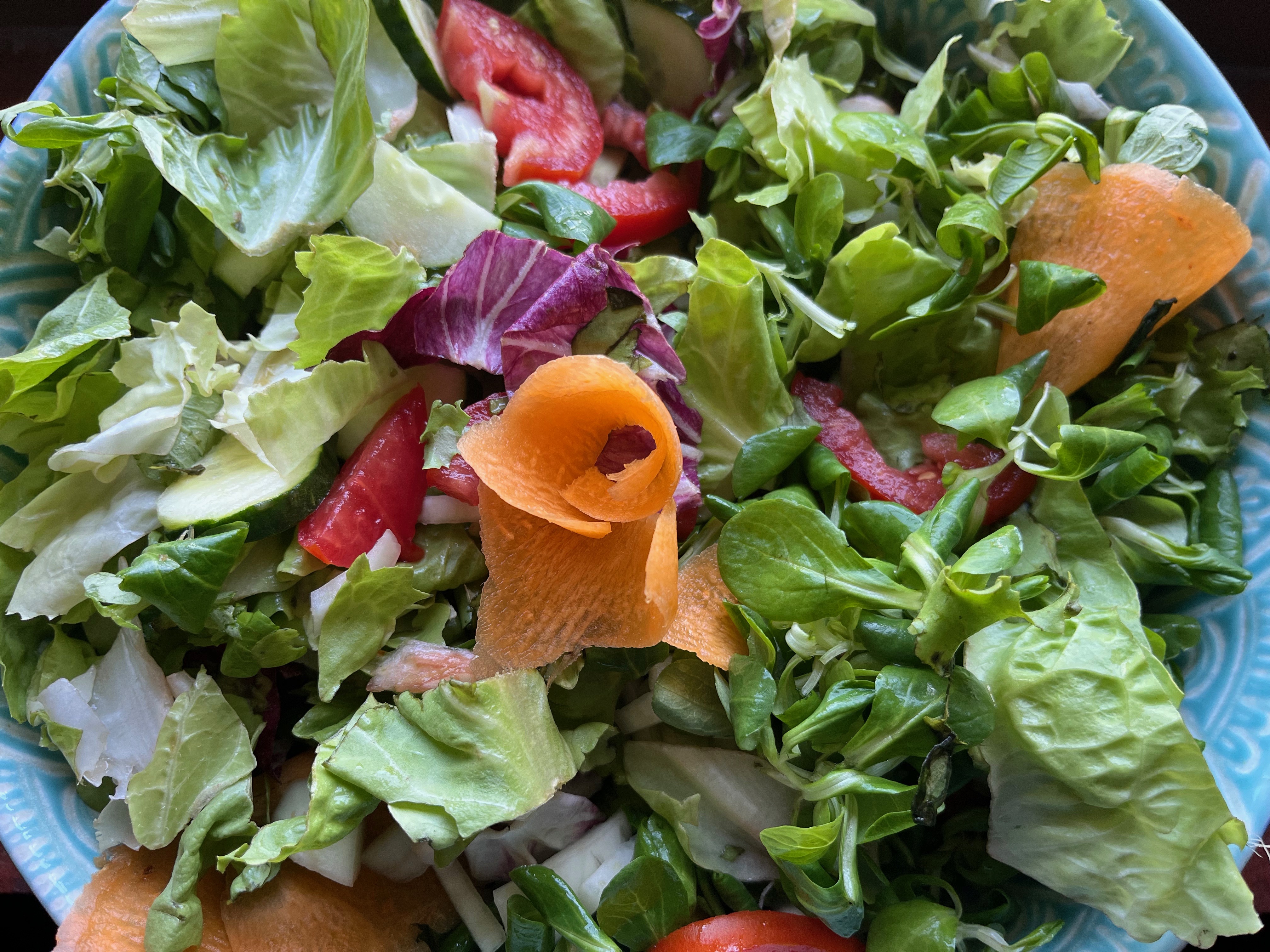 As for the salad, I advise you to always choose 2-3 varieties.I chose songino, rocket and radicchio.Vegetables should always be washed and dried unless they are already washed.Clean the fennel by removing the tough outer leaves and slice itDo the same thing with carrots.This time we used the carrot pencil sharpener