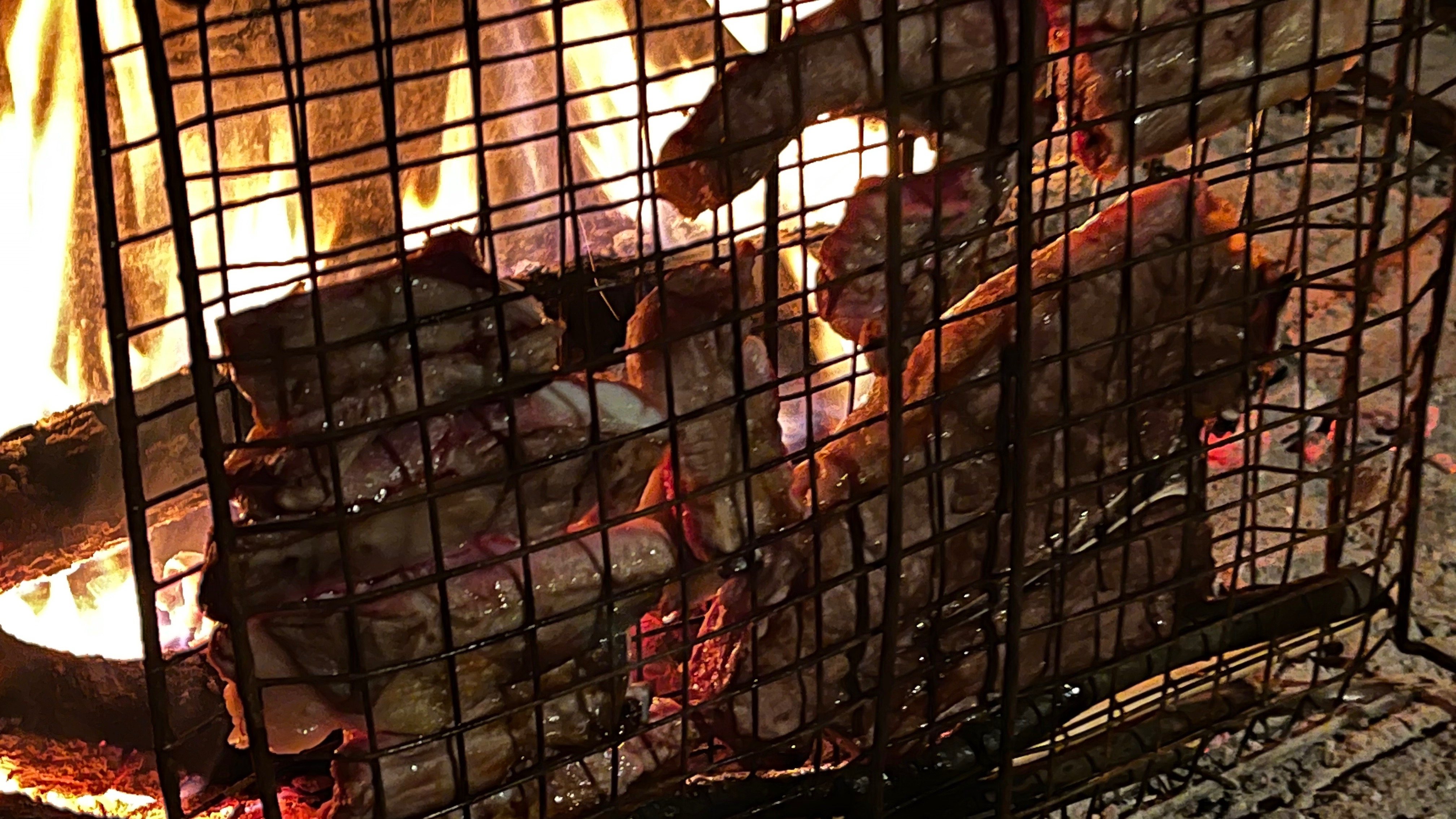 Here cooking with ribs and sausages