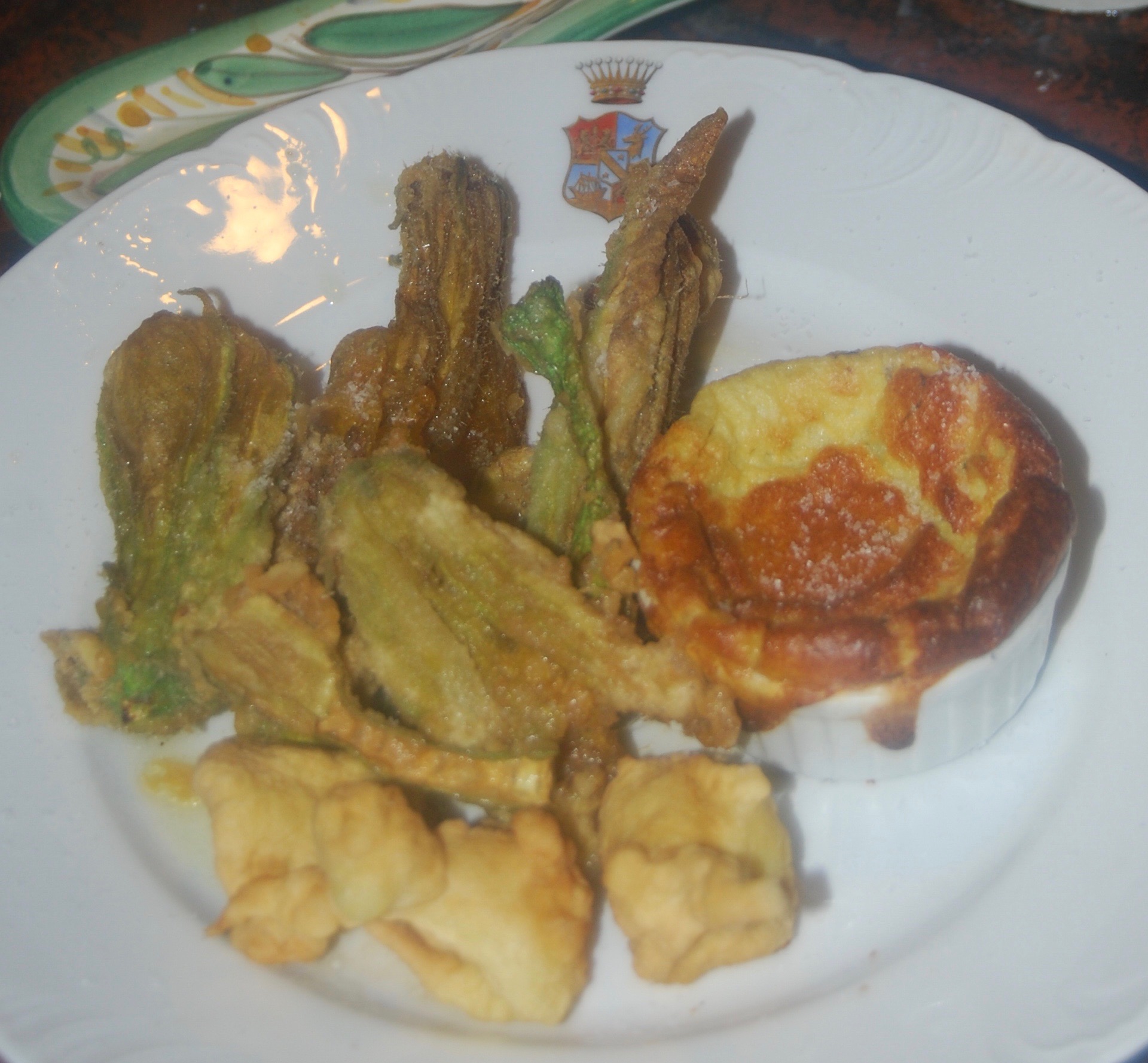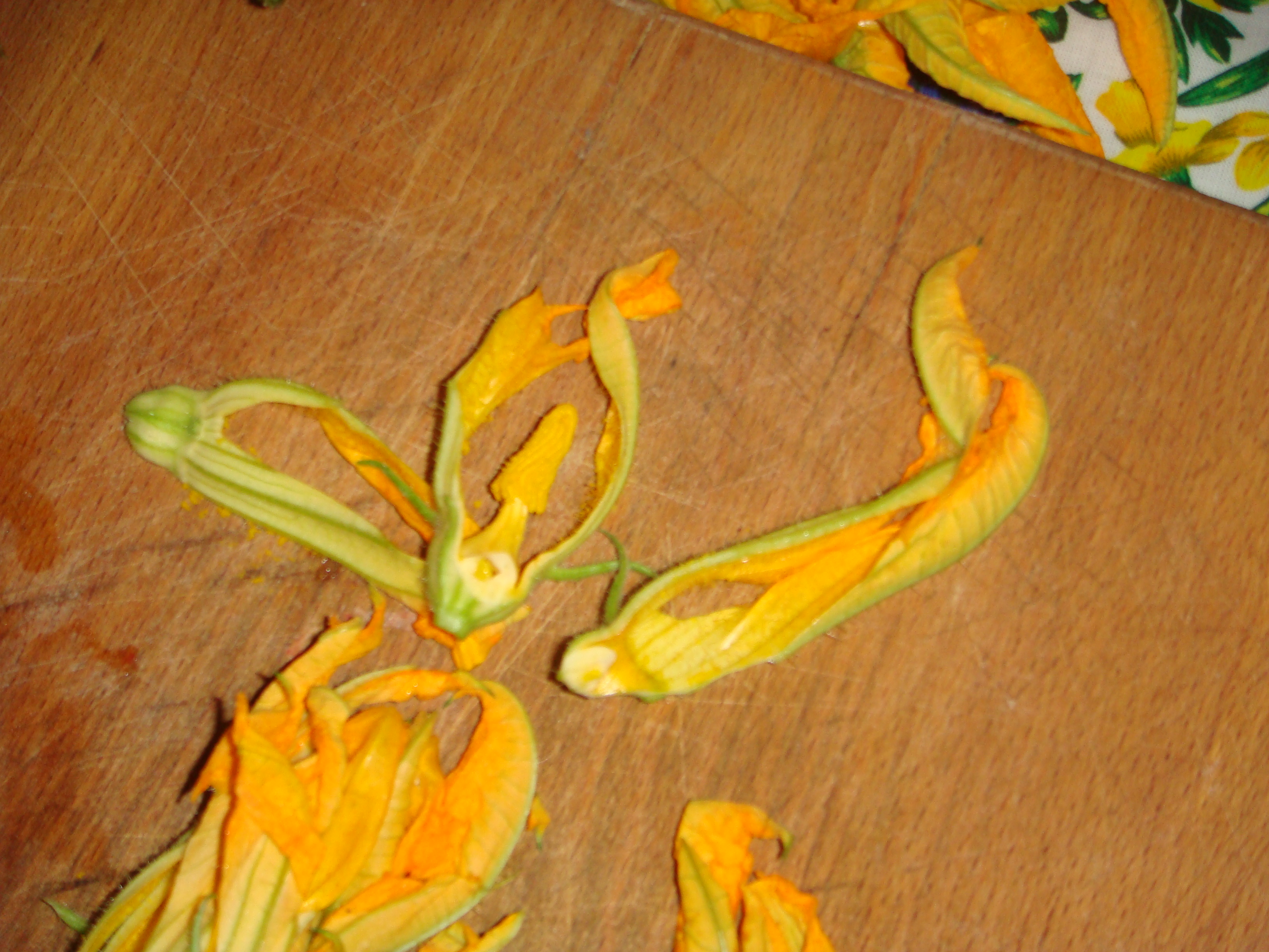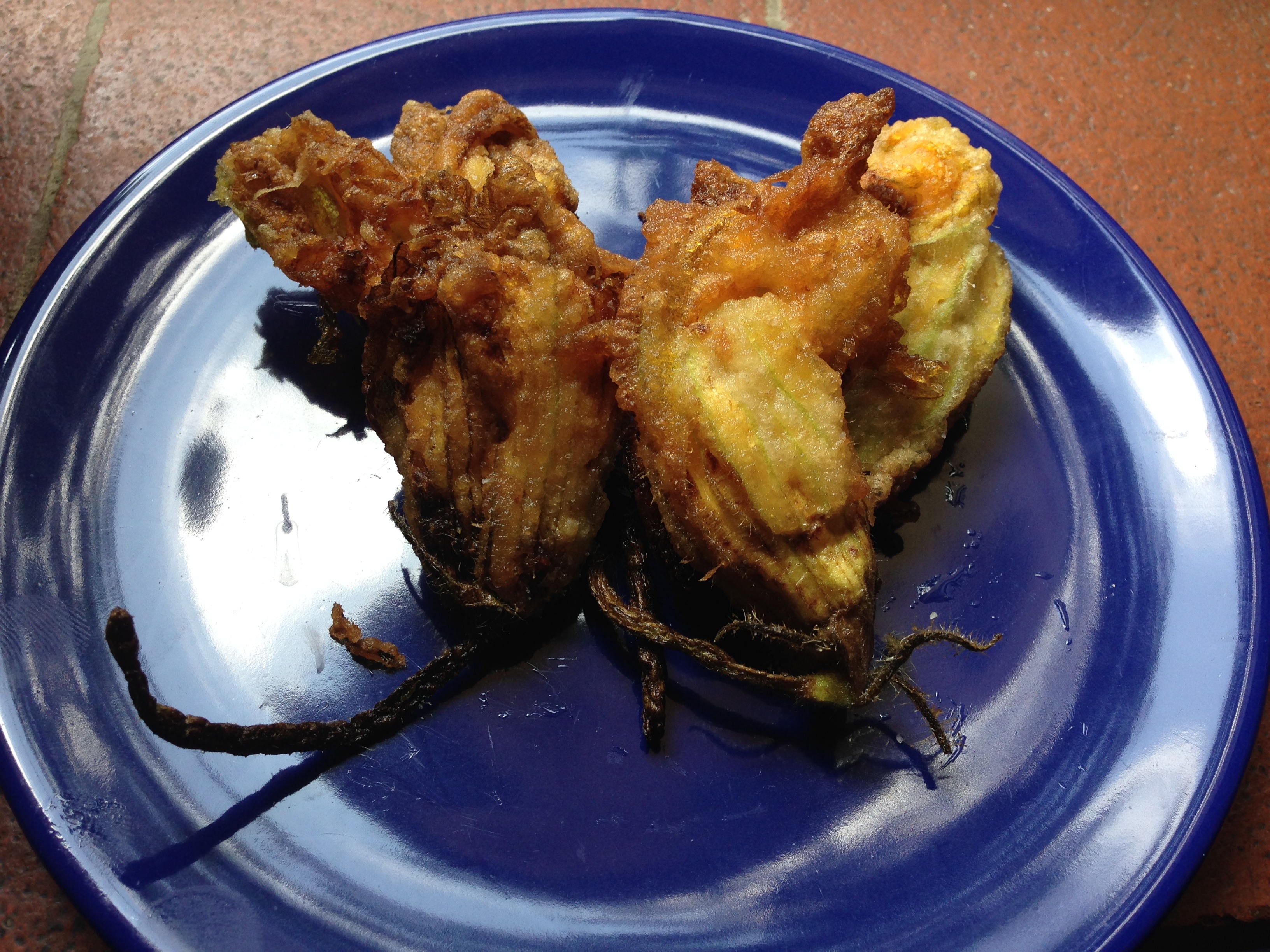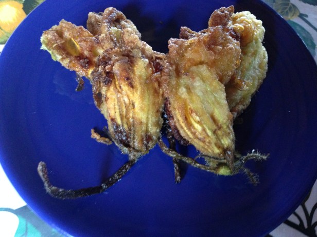 In Italy we have a lot of different recipes for fried zucchini/courgettes but the common characteristic is their delicate flavor. Stuffed zucchini flowers are crisp little morsels with a tantalizing filling.