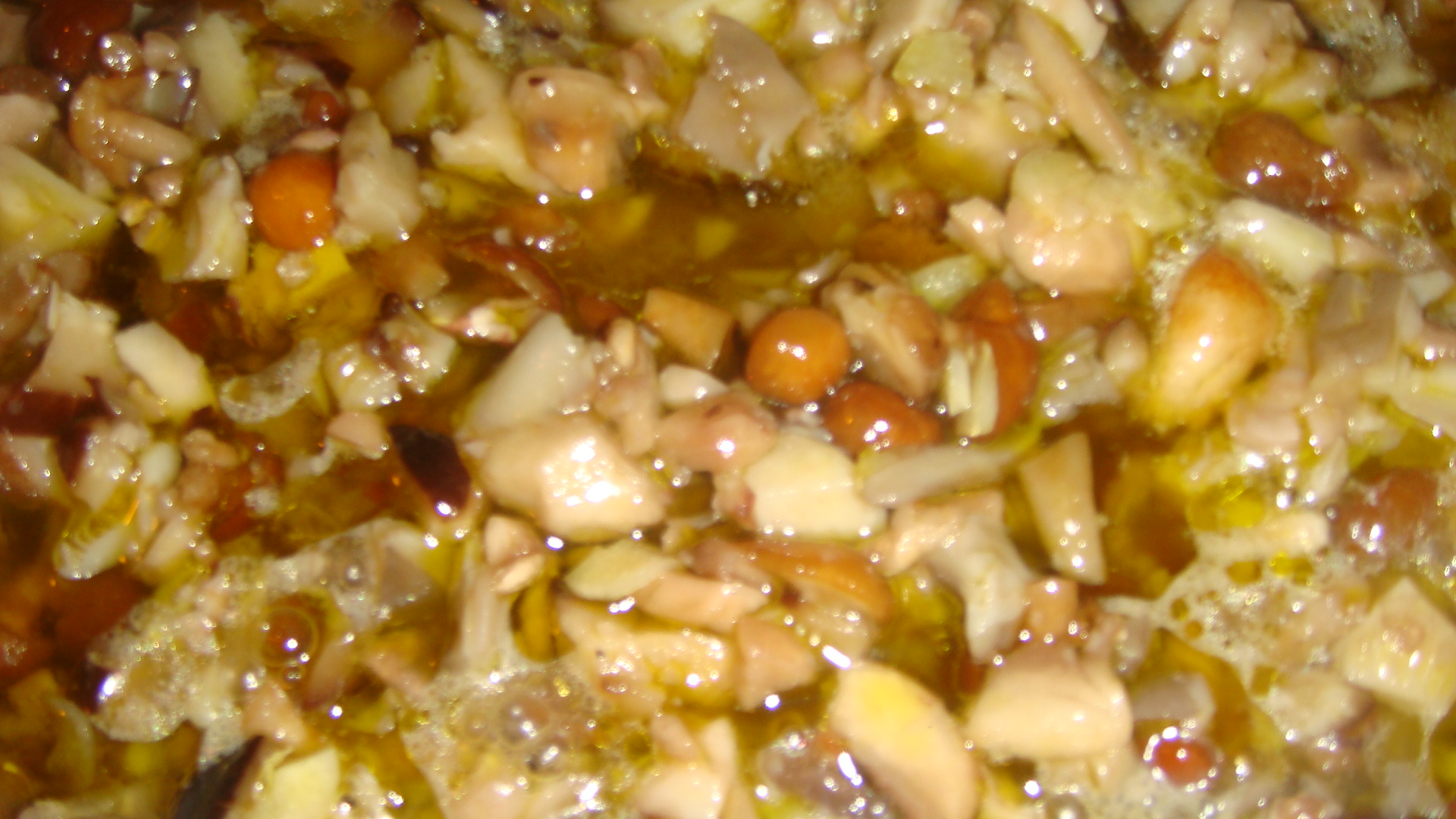 Fry the garlic in a large pan in 2 tablespoons of oil, without burning them
