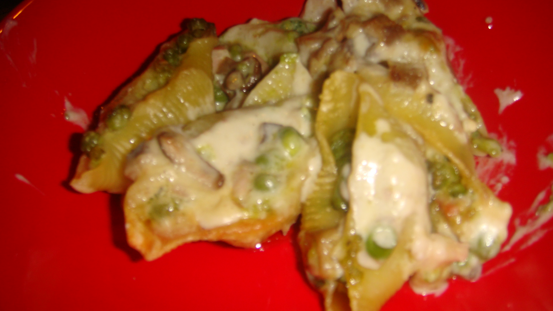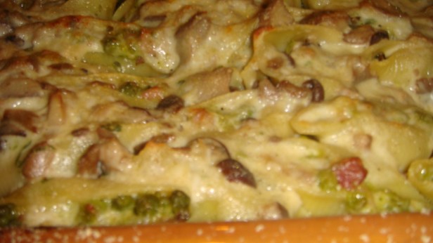 Cover the pasta shells with the béchamel sauce