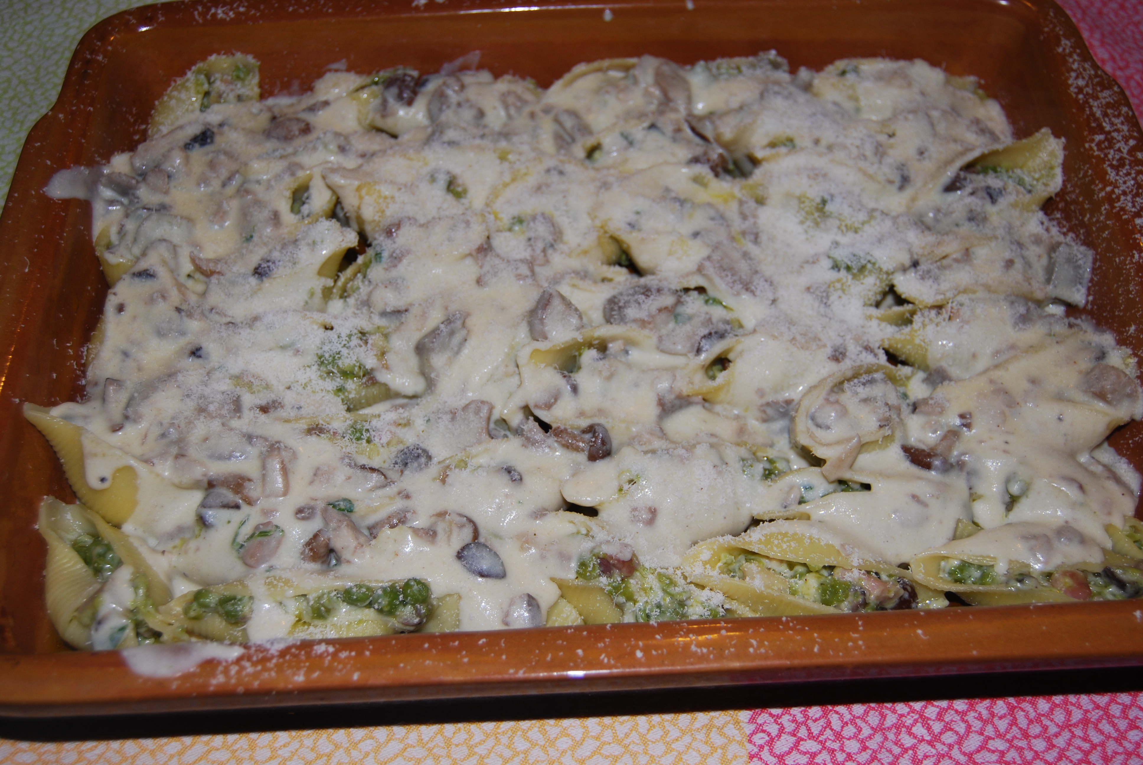 Fill the entire pan with the stuffed conchiglioni