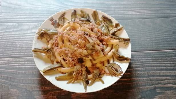 The Artichoke Romanesco del Lazio PGI (acronym for Protected Geographical Indication), also known as “cimarolo” or “mammola”, belongs to the second group. It is a spring variety characterized by its large size and the absence of thorns.
