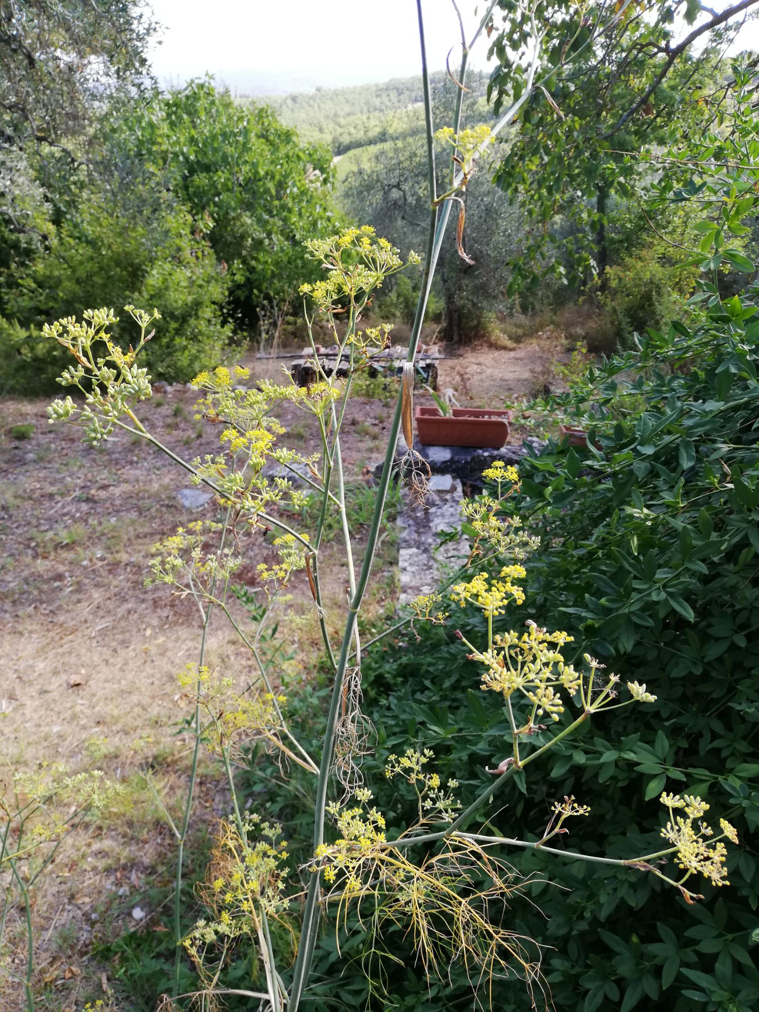 Wild fennel is a spontaneous, perennial plant with a branched stem, up to 2 m(ca. 78 inches) tall. It has leaves that resemble hay, hence the name foeniculum, which are green in color and produces umbels/umbrellas of small yellow flowers in summer.
