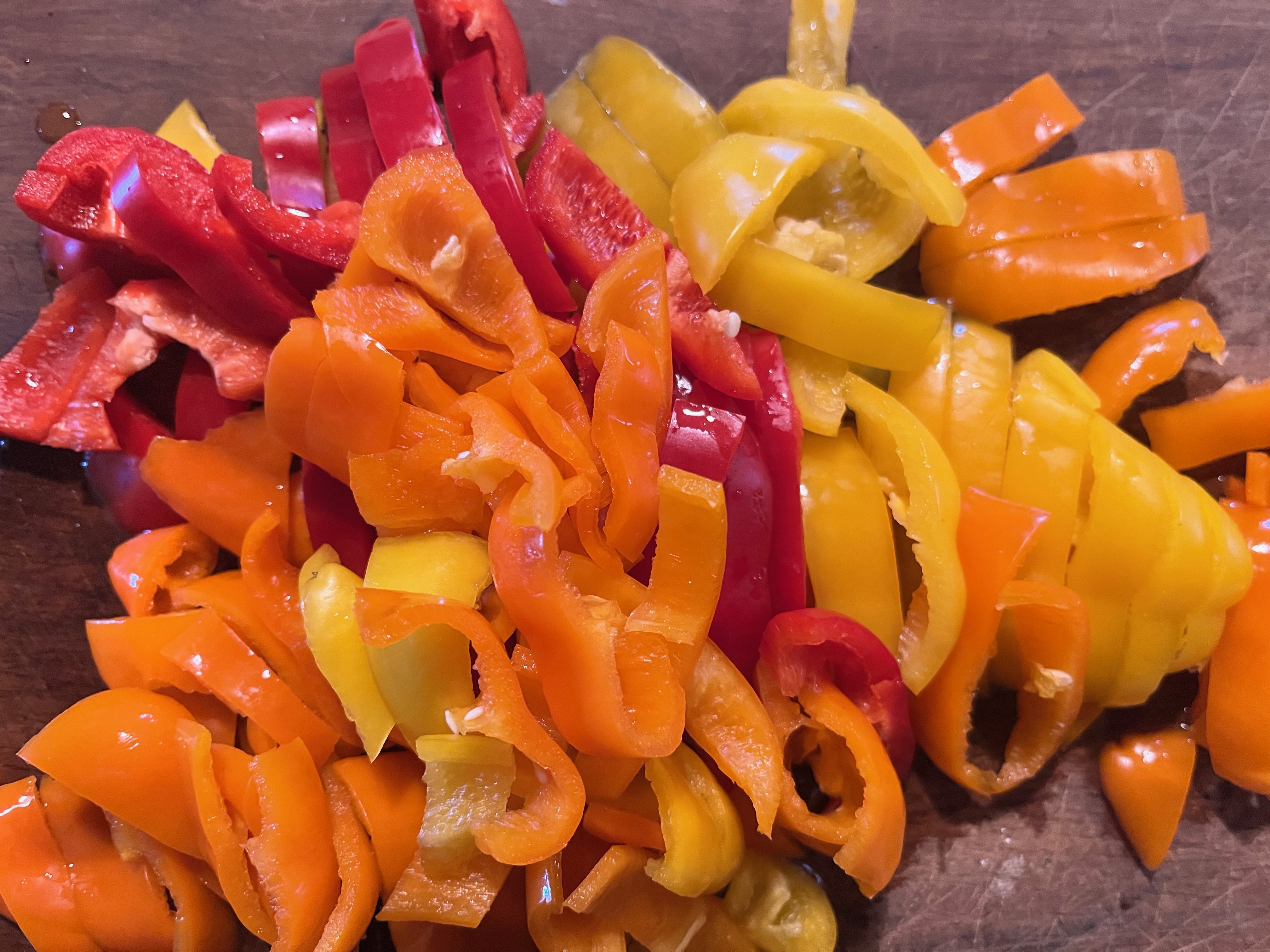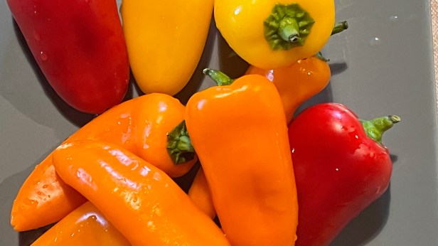 At the greengrocer we saw these delicious mini peppers of various colors and we couldn’t resist.Sweet peppers don’t come in just red and green anymore—yellow, orange