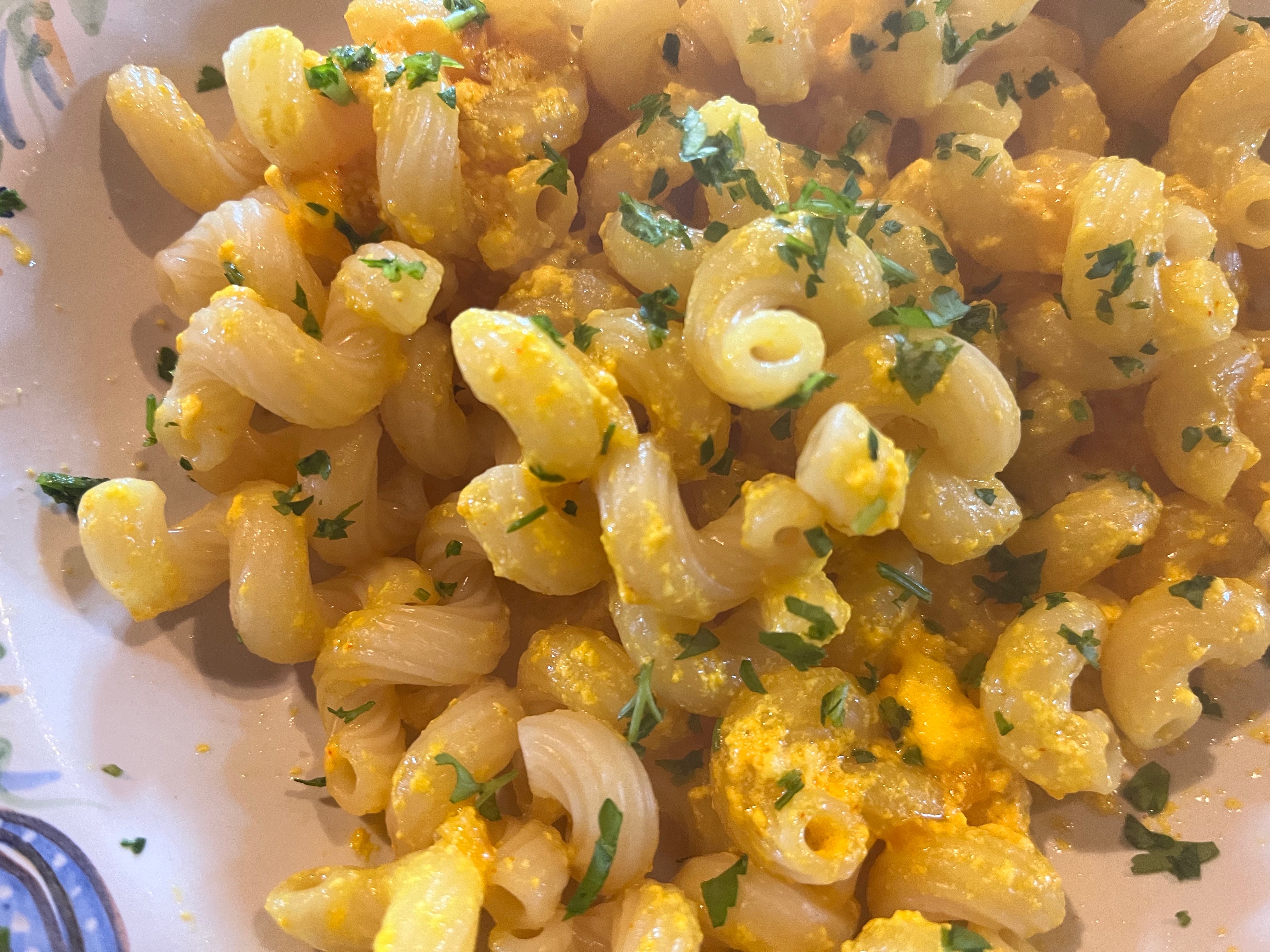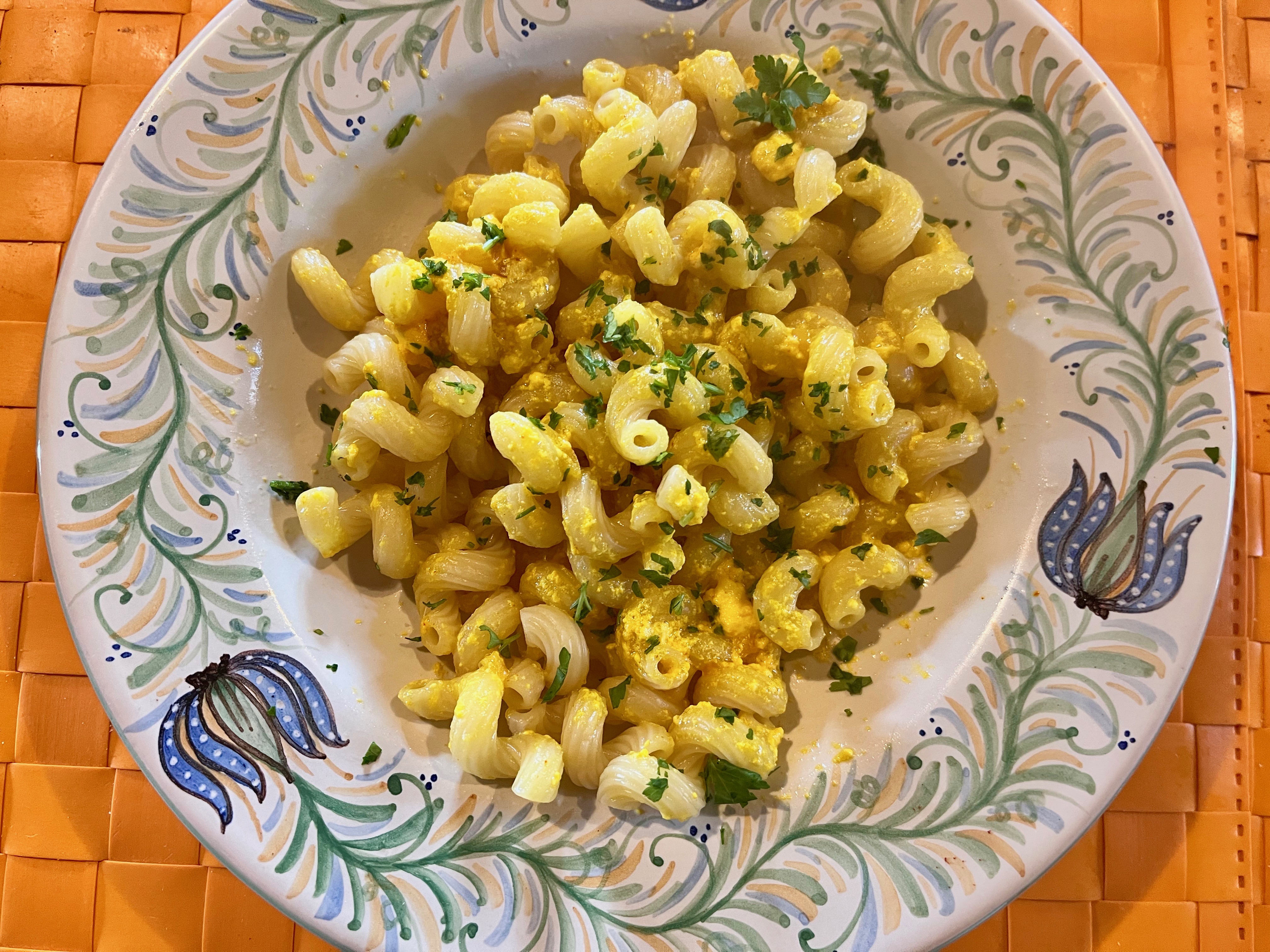 Penne with Saffron is a creamy and fresh dish with bright and lively colors.