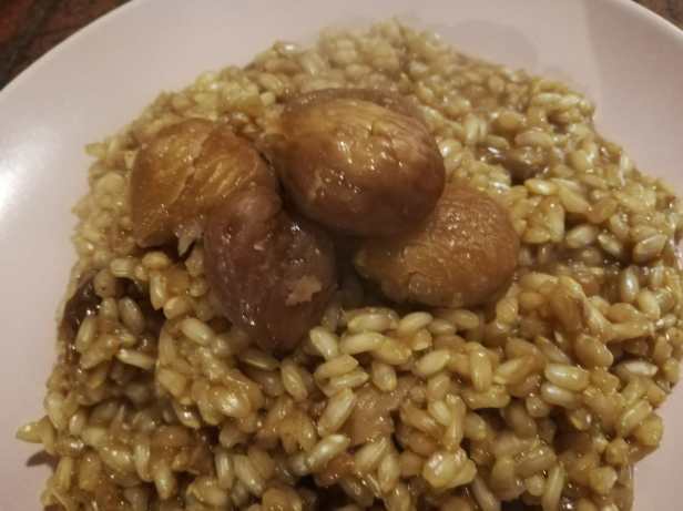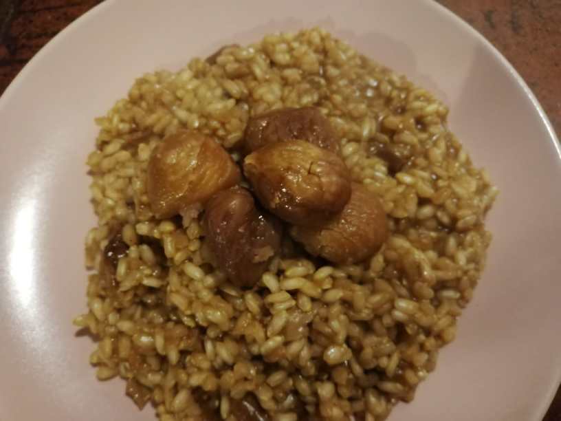 We prepared a traditional mushroom risotto (recipe in the link) and added some vacuum-packed cooked chestnuts towards the end of cooking. A combination of aromas and flavors that strikes and warms. Chestnuts added a buttery and nutty flavor ,a gourmet touch to our mushroom risotto