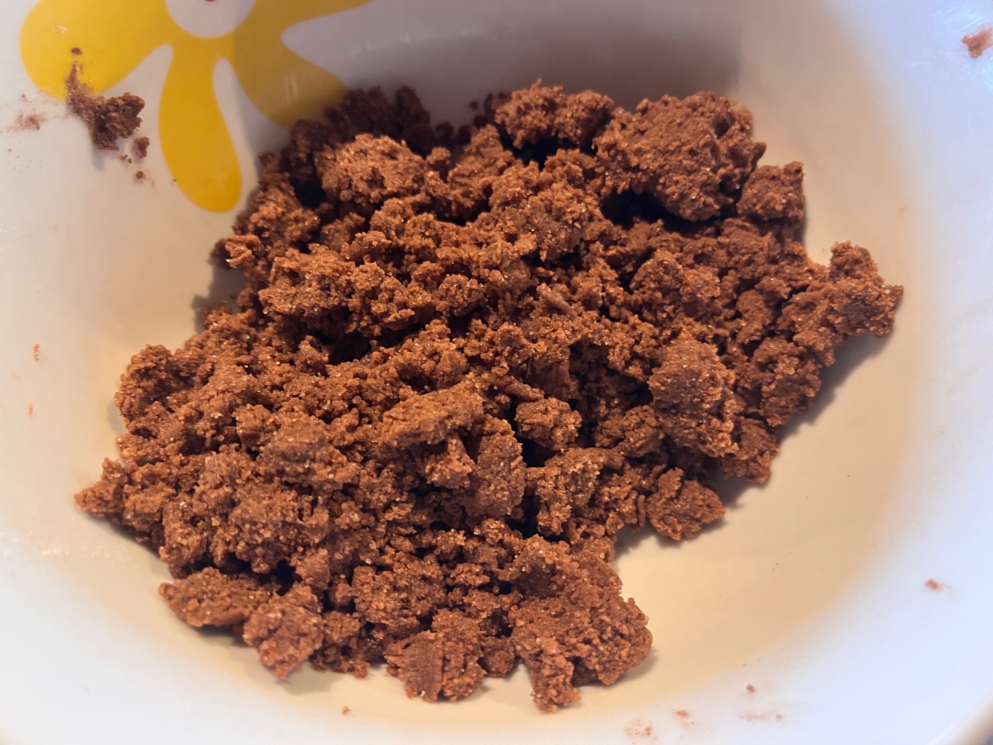 - In a bowl work flour, cocoa, butter and sugar with your fingertips until crumbs are obtained.