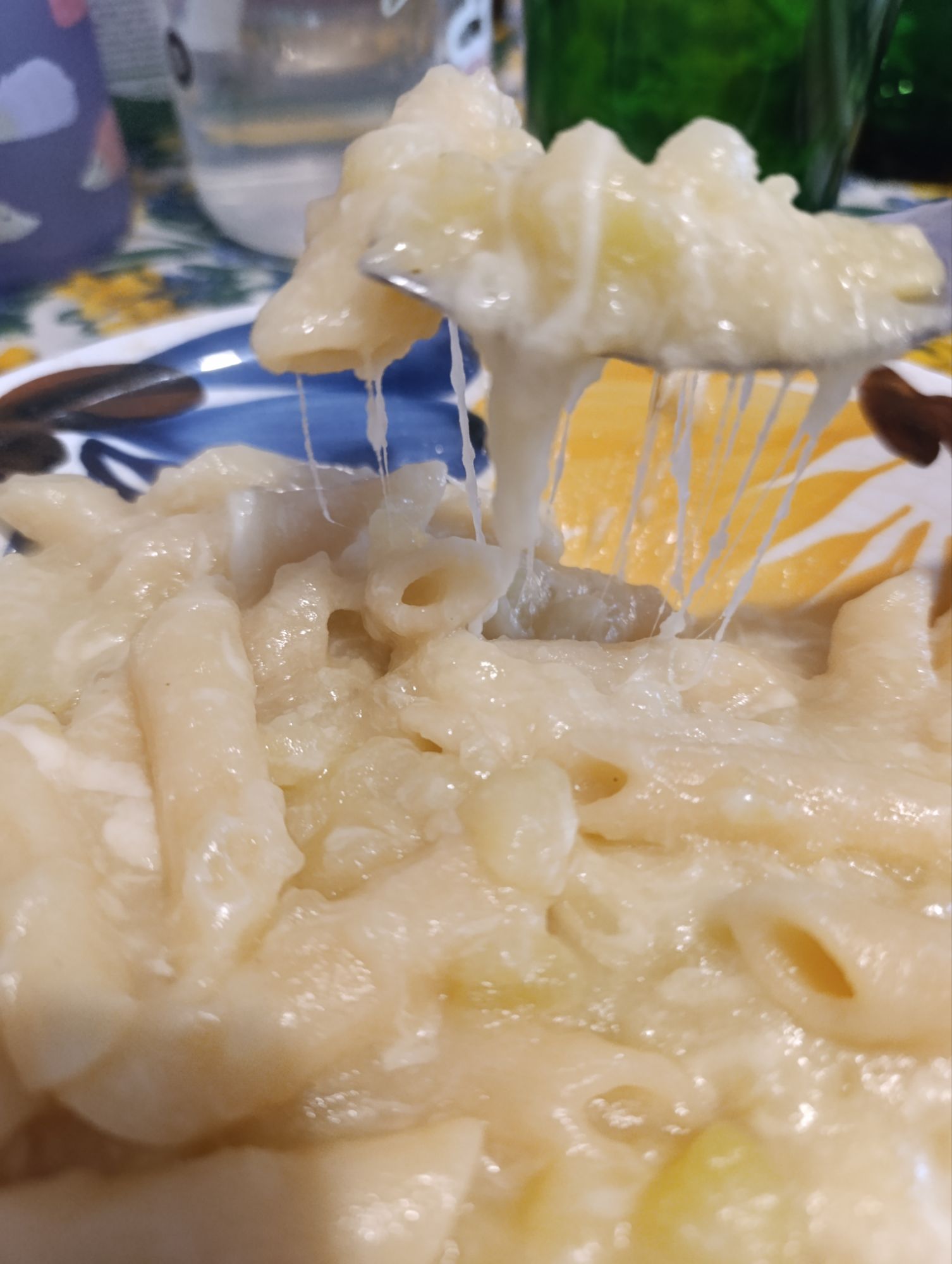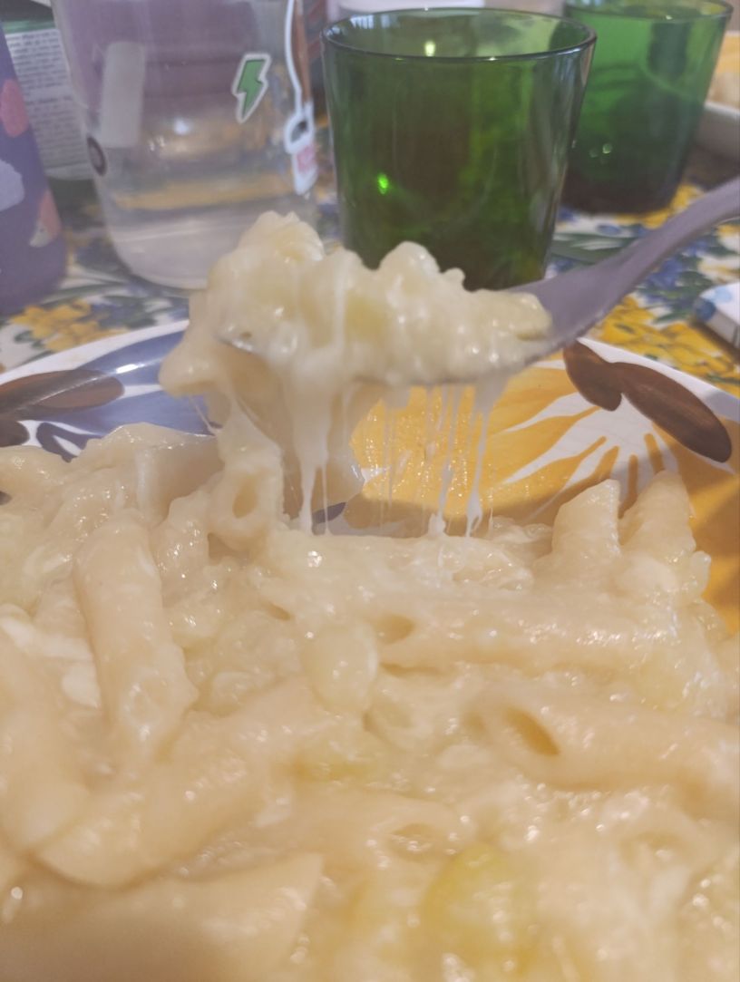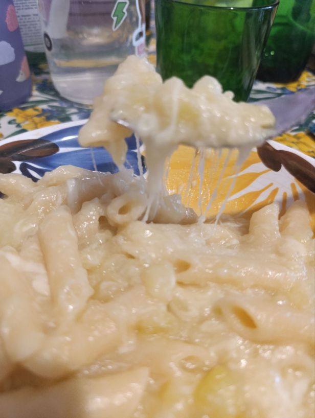 The secret to beautifully creamy pasta and potatoes is to cook over a low heat, stirring slowly! once cooked al dente and perfectly mixed with the sauce; add the provola cubes as tradition dictates! which if you can’t find, you can replace with scamorza. The result is what you see: an amazingly delicious and enveloping pasta and potatoes with an indescribable creaminess!
