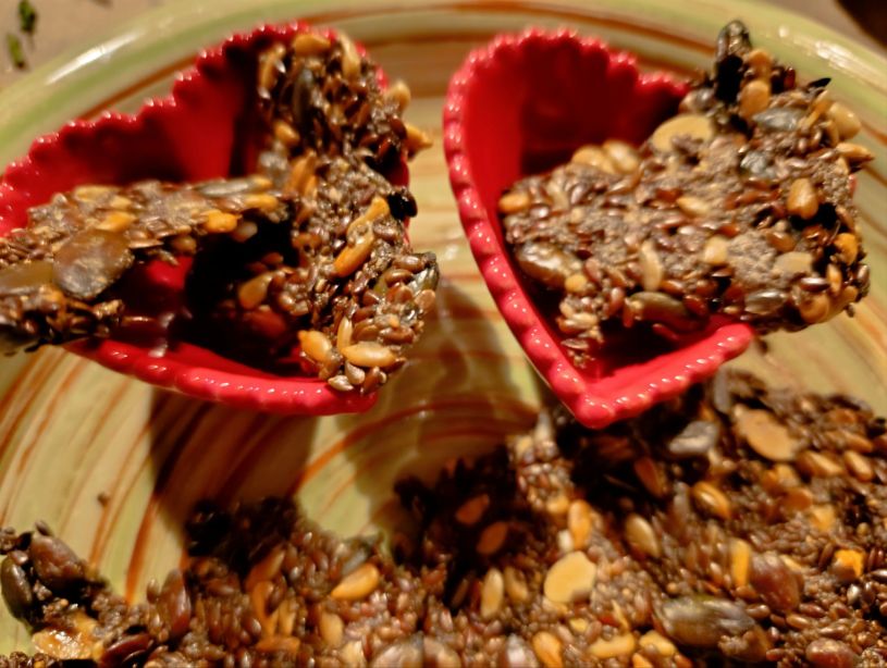 You obtain crunchy ,beautiful seed snacks you can eat immediately or store in a glass or give as a gift.