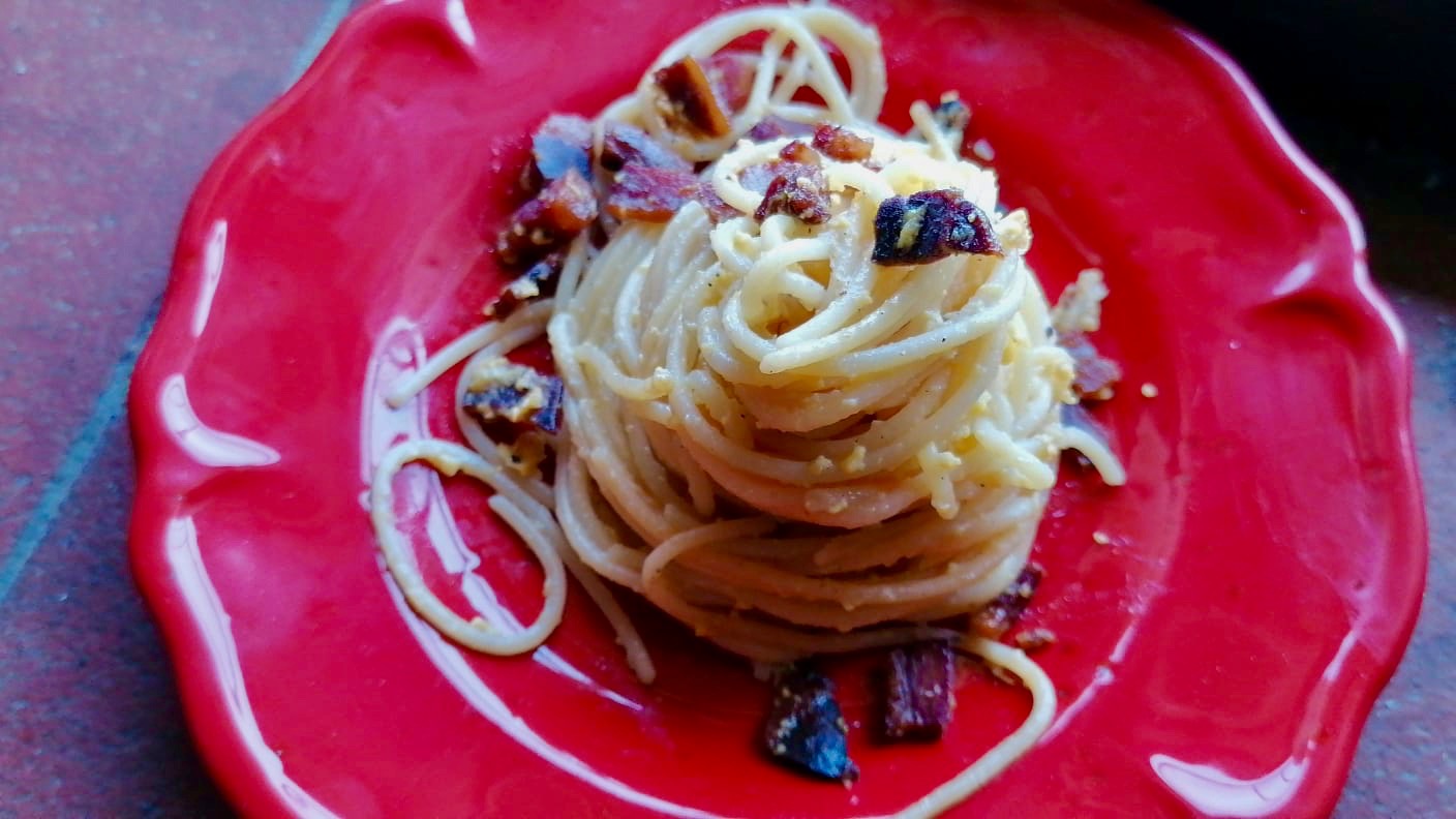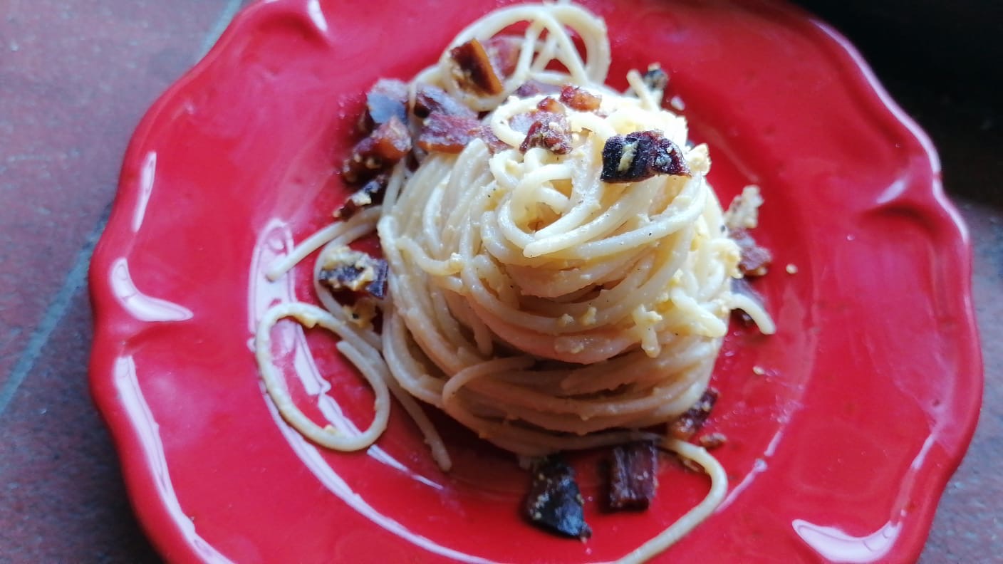 The first appearance of a dish vaguely similar to carbonara dates back to 1881: Francesco Palma, in his book “The Prince of Chefs,” introduces a pasta dish with eggs, lard, and cheese.