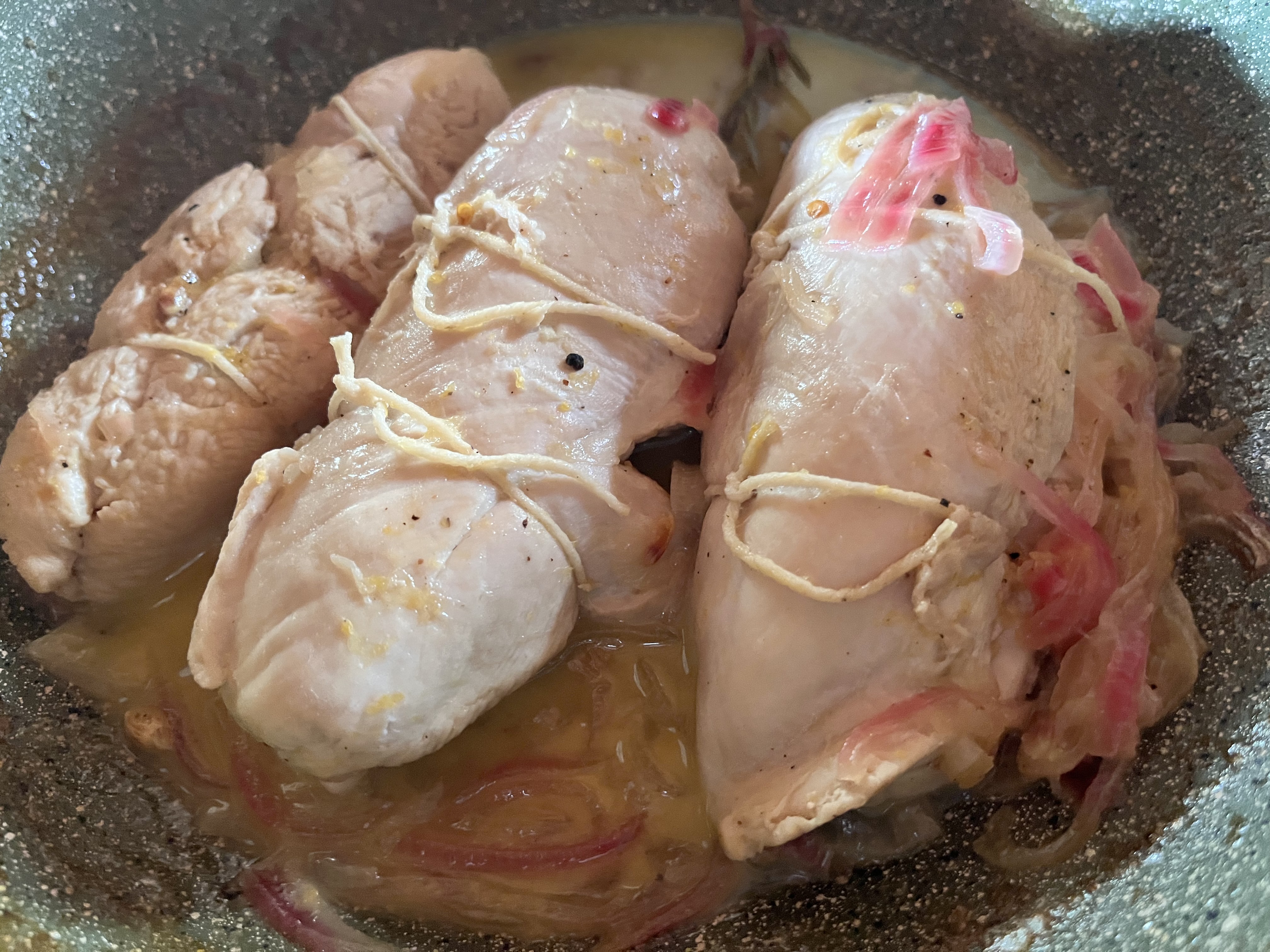 This is what would be usually considered an unexpected dish as the ingredients are simple chicken breast, fresh lemons, herb and wine but the final flavour and taste is surprising.