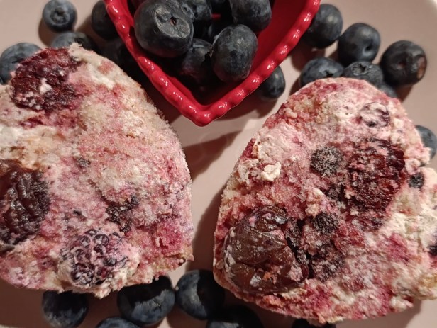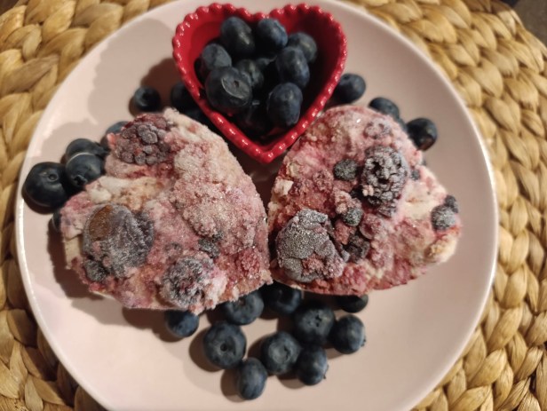 We had some berry tiramisu—you can find the recipe here—and we thought it would be perfect for Valentine’s Day. So we used a simple heart-shaped mold, placed the tiramisu in it, and froze it.