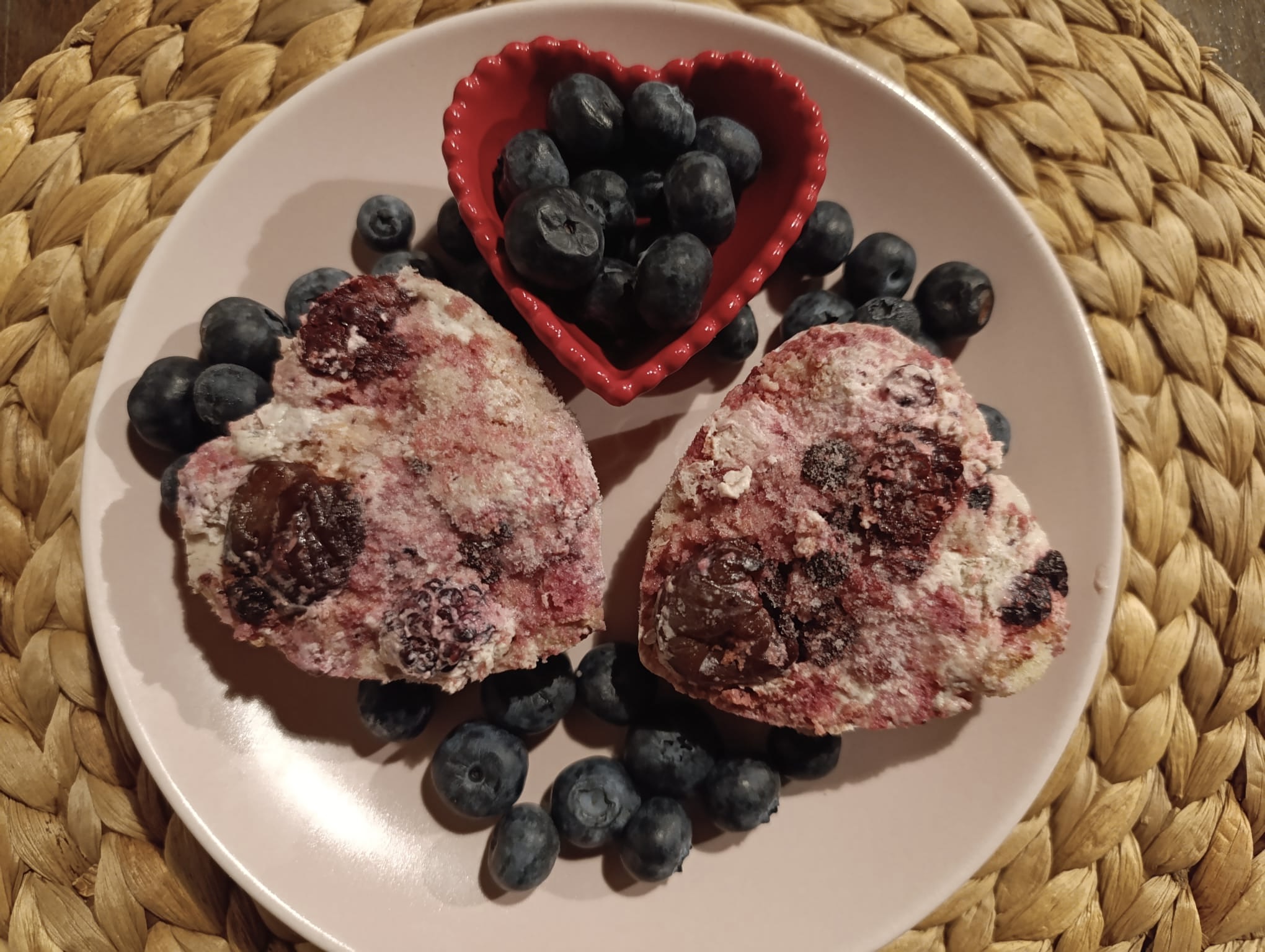 We had some berry tiramisu—you can find the recipe here—and we thought it would be perfect for Valentine’s Day. So we used a simple heart-shaped mold, placed the tiramisu in it, and froze it.